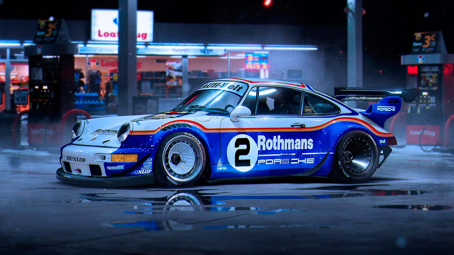 R W B Porsche Rothmans Racing Livery Night Scene Wallpaper