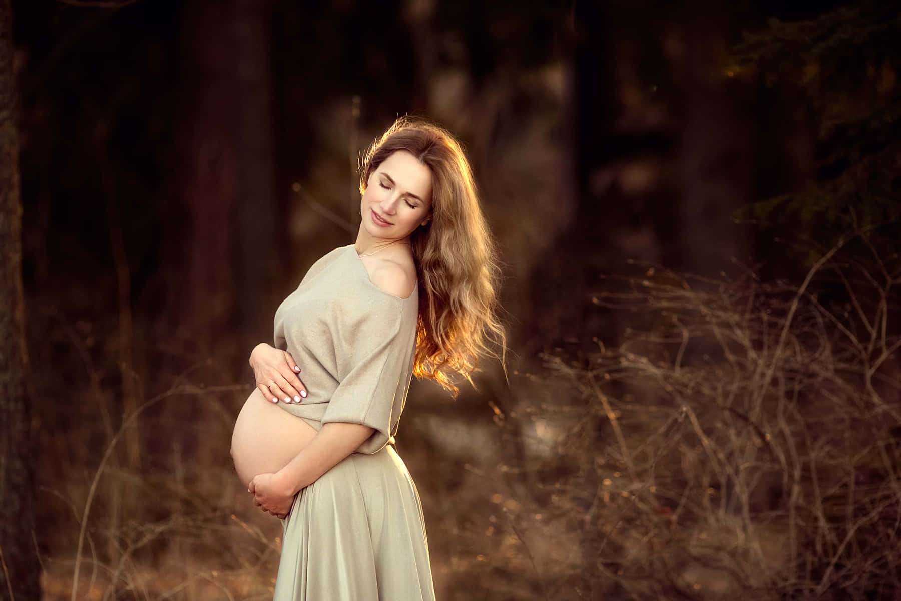 Radiant Expecting Mother With Baby Bump Wallpaper