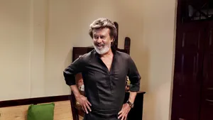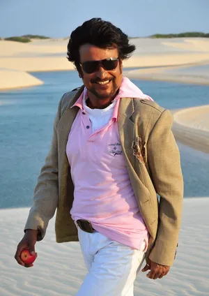 Rajinikanth Against Golden Wall Wallpaper