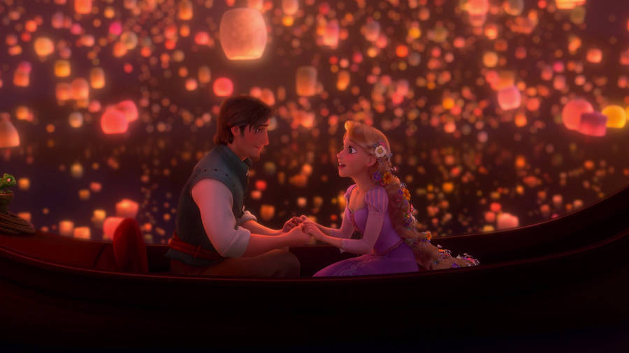 Rapunzel And Flynn Enjoying A Peaceful Boat Ride In Corona Wallpaper