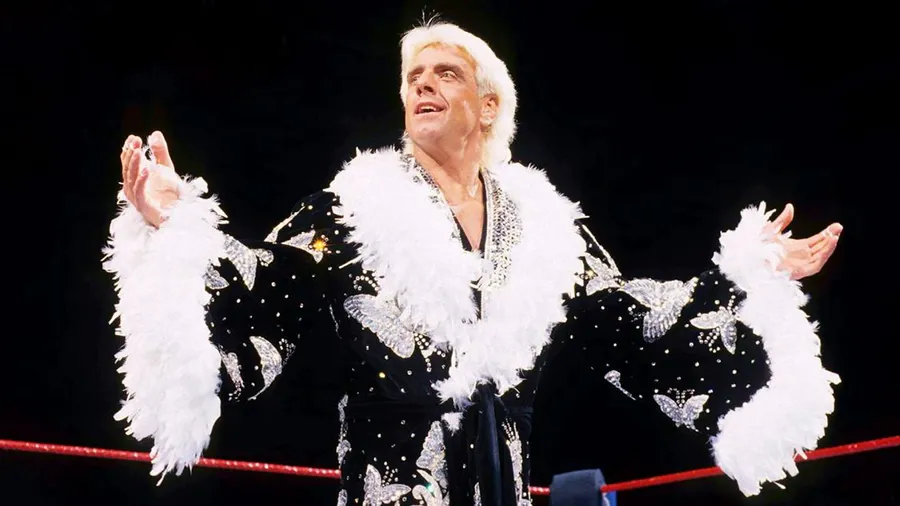 Ric Flair Wearing Black Robe With White Fur Wallpaper