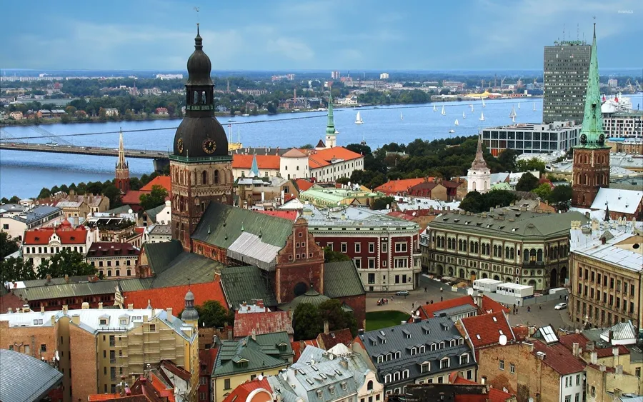 Riga Cathedral And St. Peter’s Church In One Photo Wallpaper