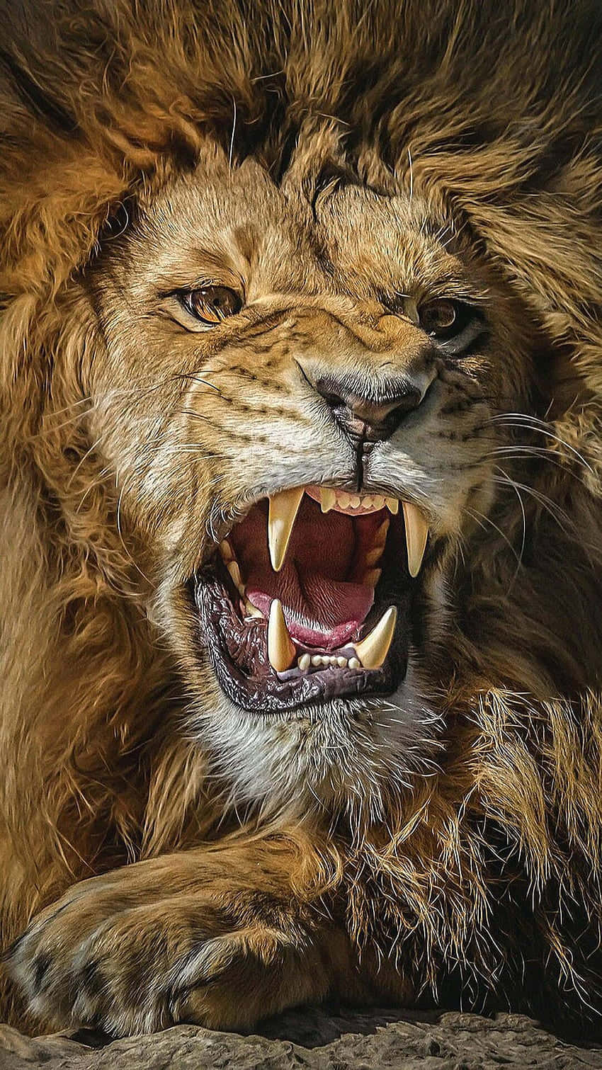 Roaring Lion With Massive Fangs Wallpaper