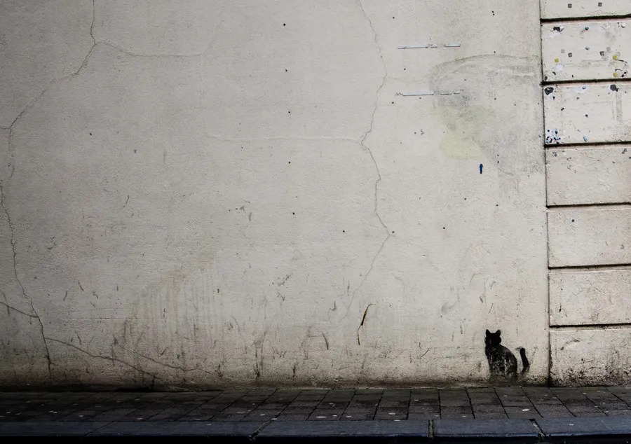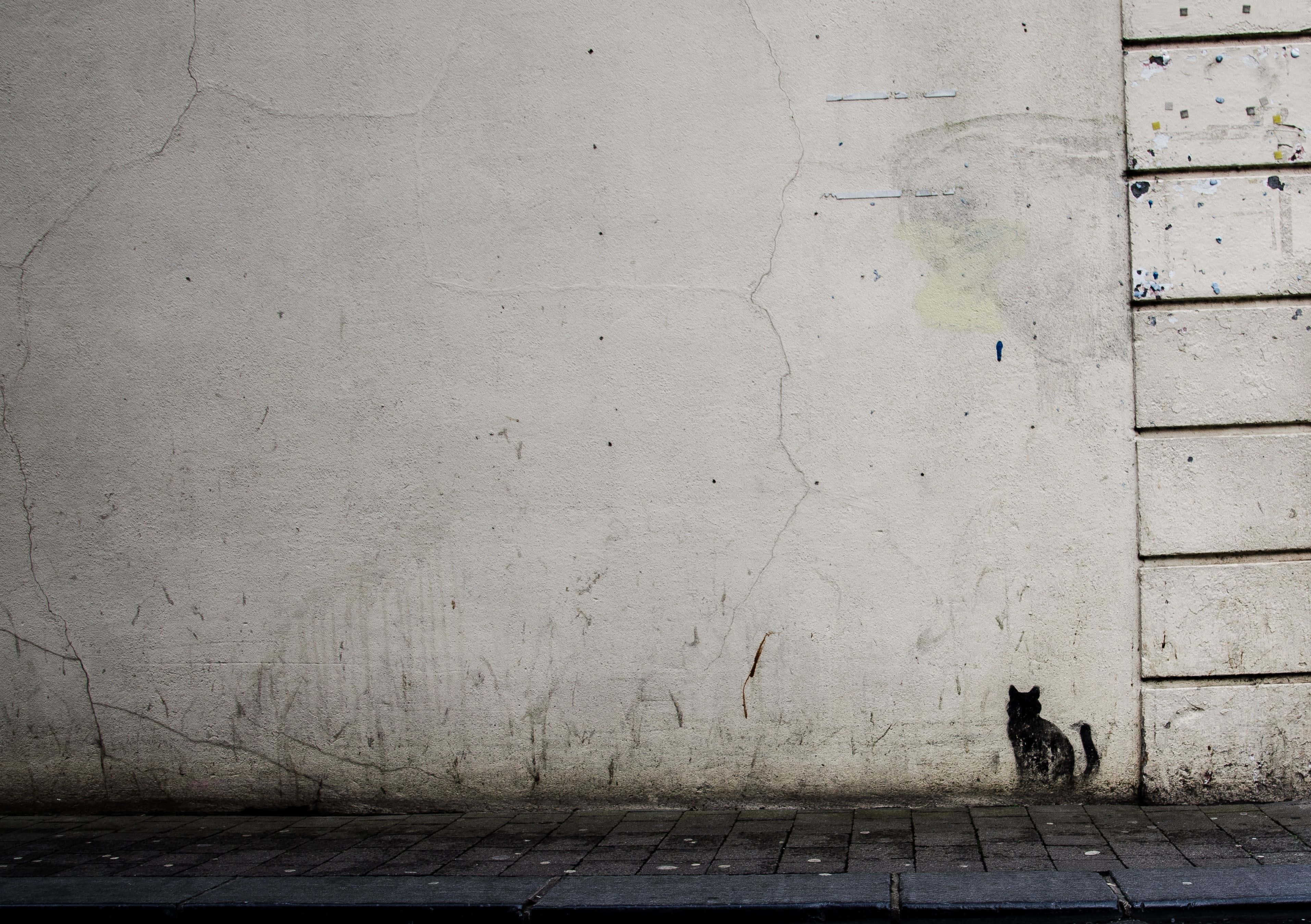 Rough Texture White Wall With A Painted Cat Wallpaper