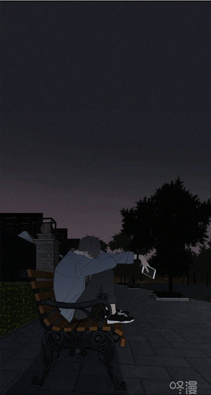 Sad Boy Anime Park Bench Wallpaper