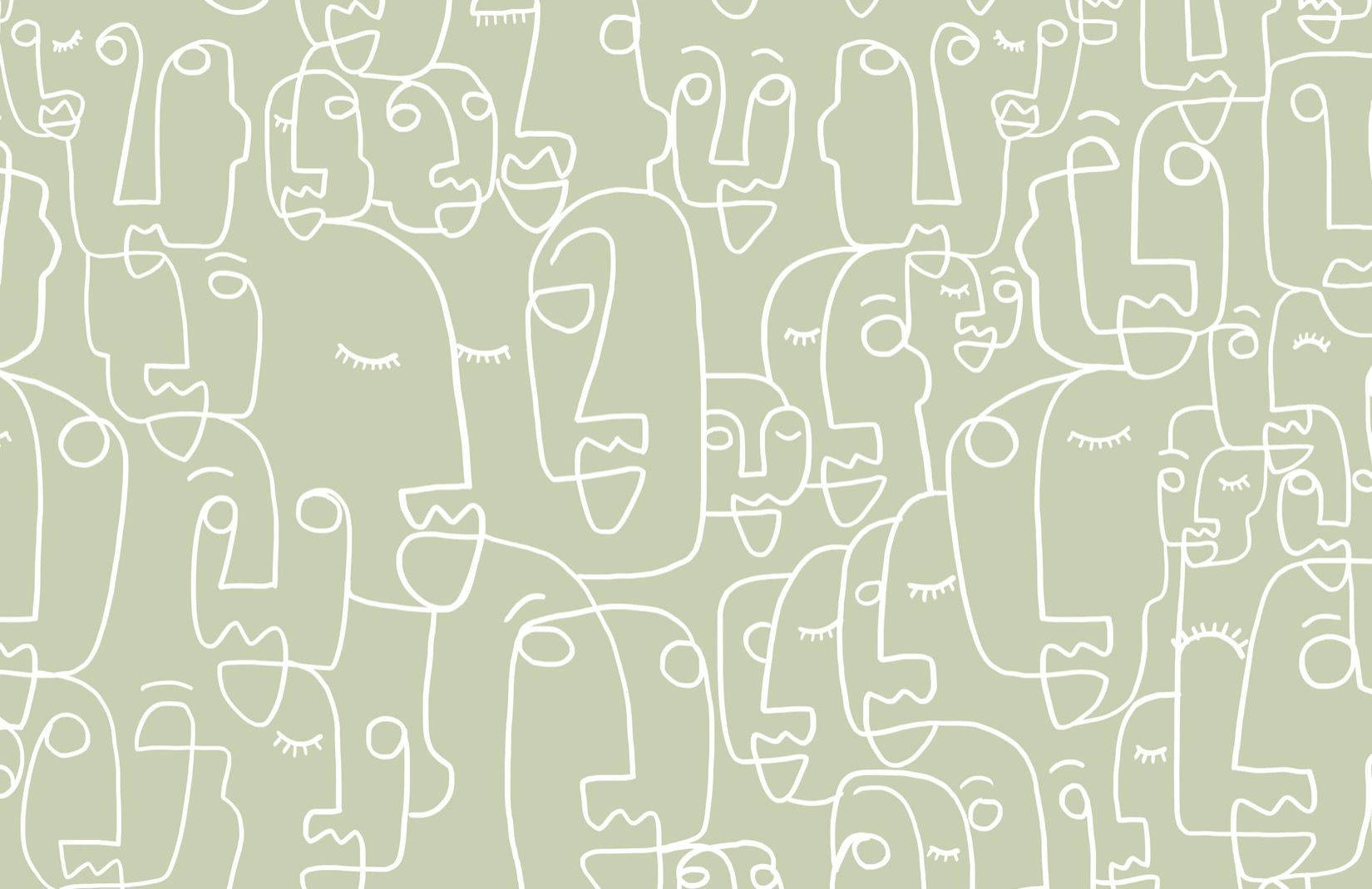Sage Green Aesthetic Faces Wallpaper