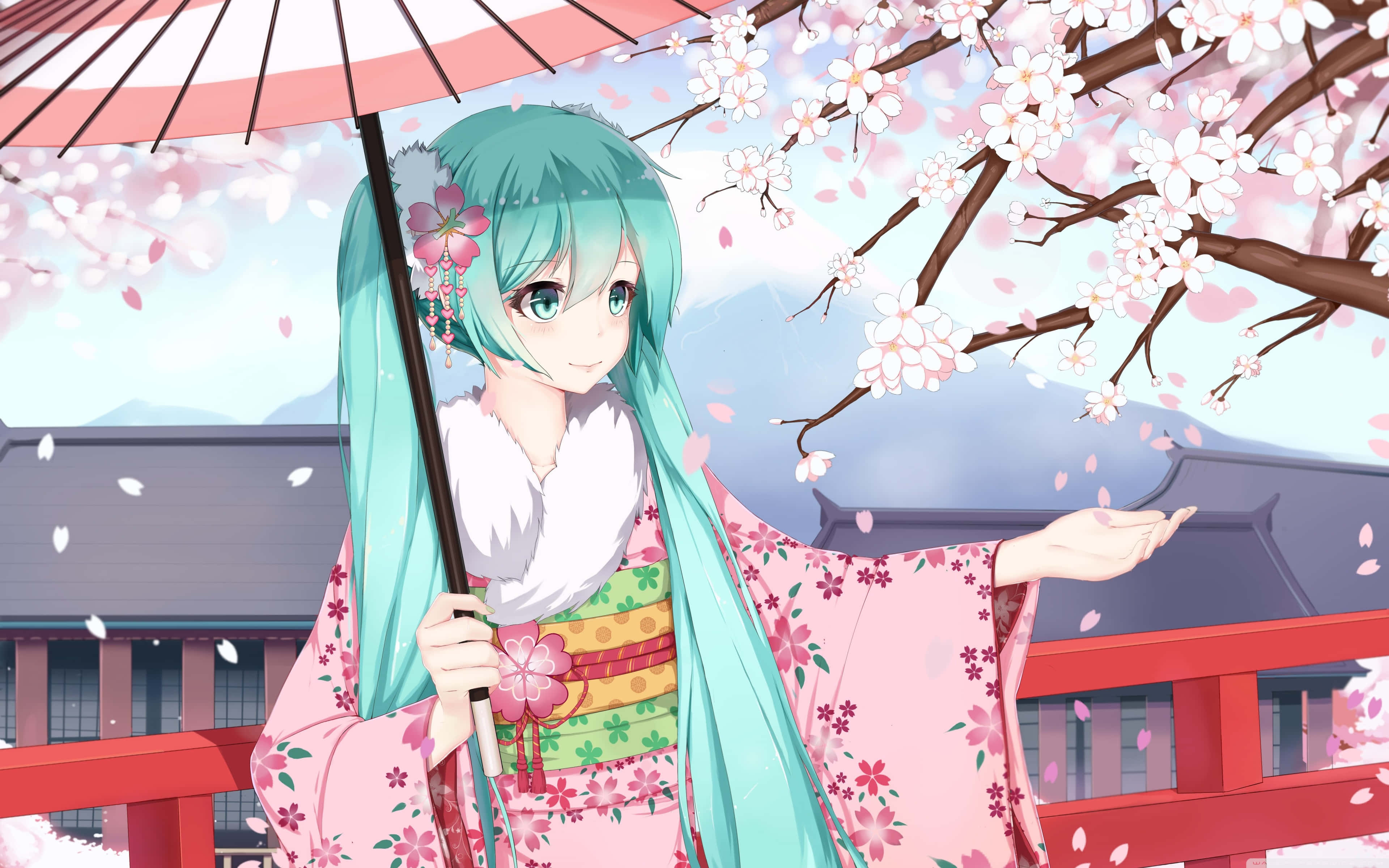 Sakura Miku Emerges From A Blossom Of Cherry Trees Wallpaper