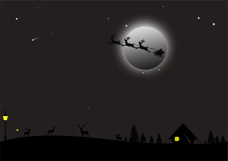 Santa Claus Flying Over A Night Sky With Deer And Sleigh Wallpaper