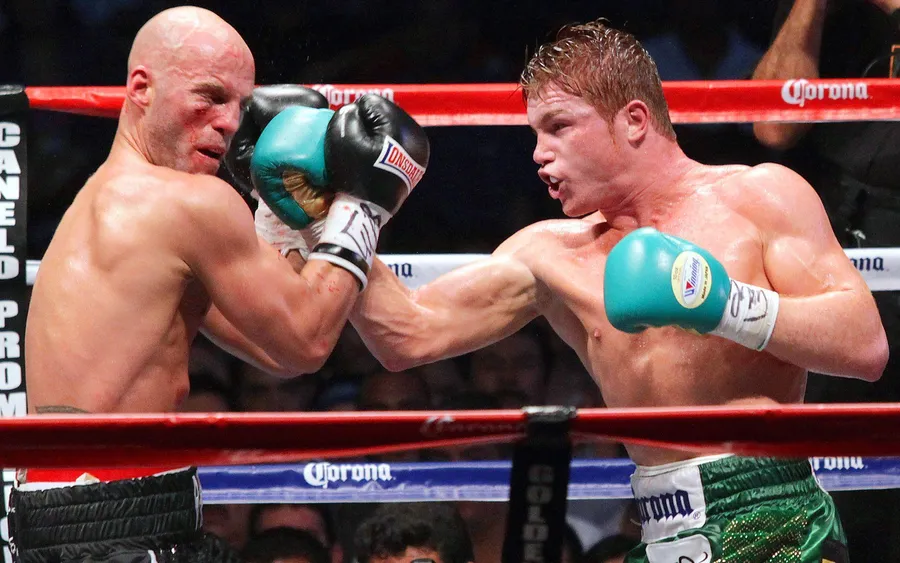 Saul Canelo Alvarez Landing A Powerful Punch Wallpaper