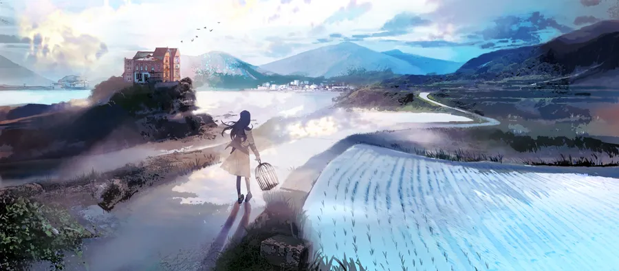 Serene Anime Landscapewith Character Wallpaper