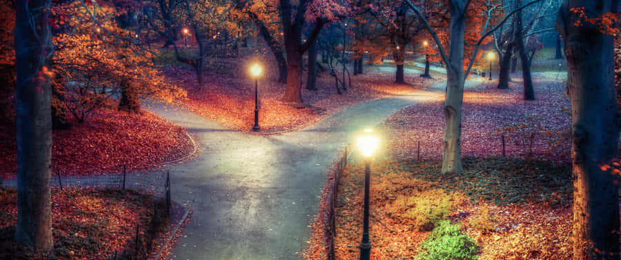 “serene Fall Landscape Embraced By Golden Orange Light” Wallpaper