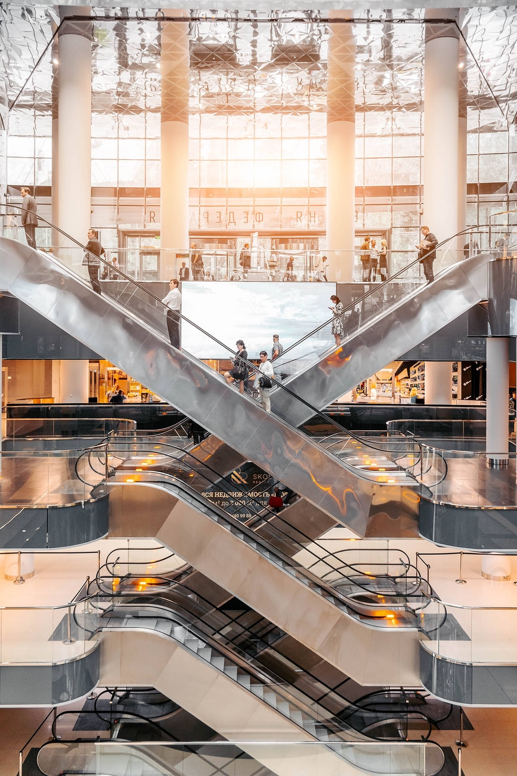 Shopping Mall Metal Escalators Wallpaper