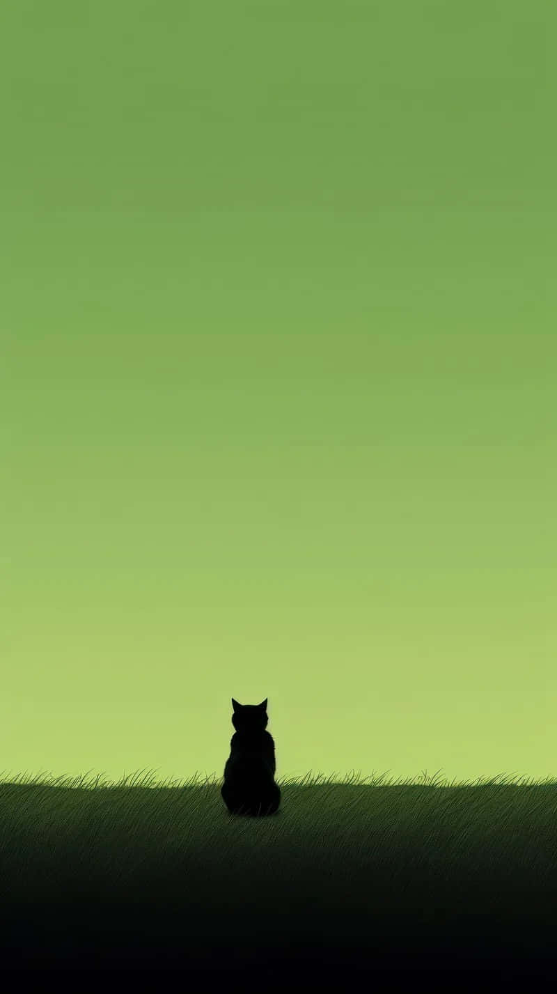Silhouette Cat Green Gradient Background Wallpaper