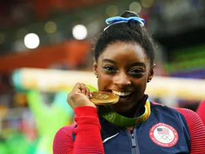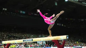 “simone Biles Leaps During A Recent Show” Wallpaper