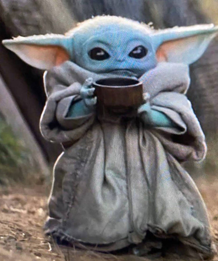 “sipping Some Tea With Baby Yoda” Wallpaper