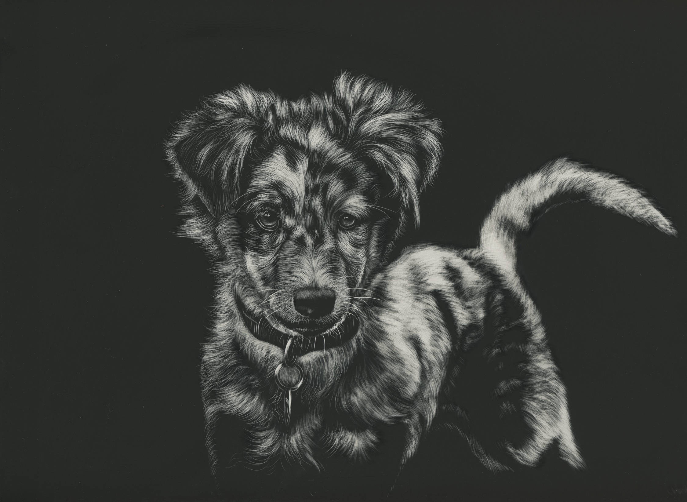 Sketch Of Black And White Dog Wallpaper