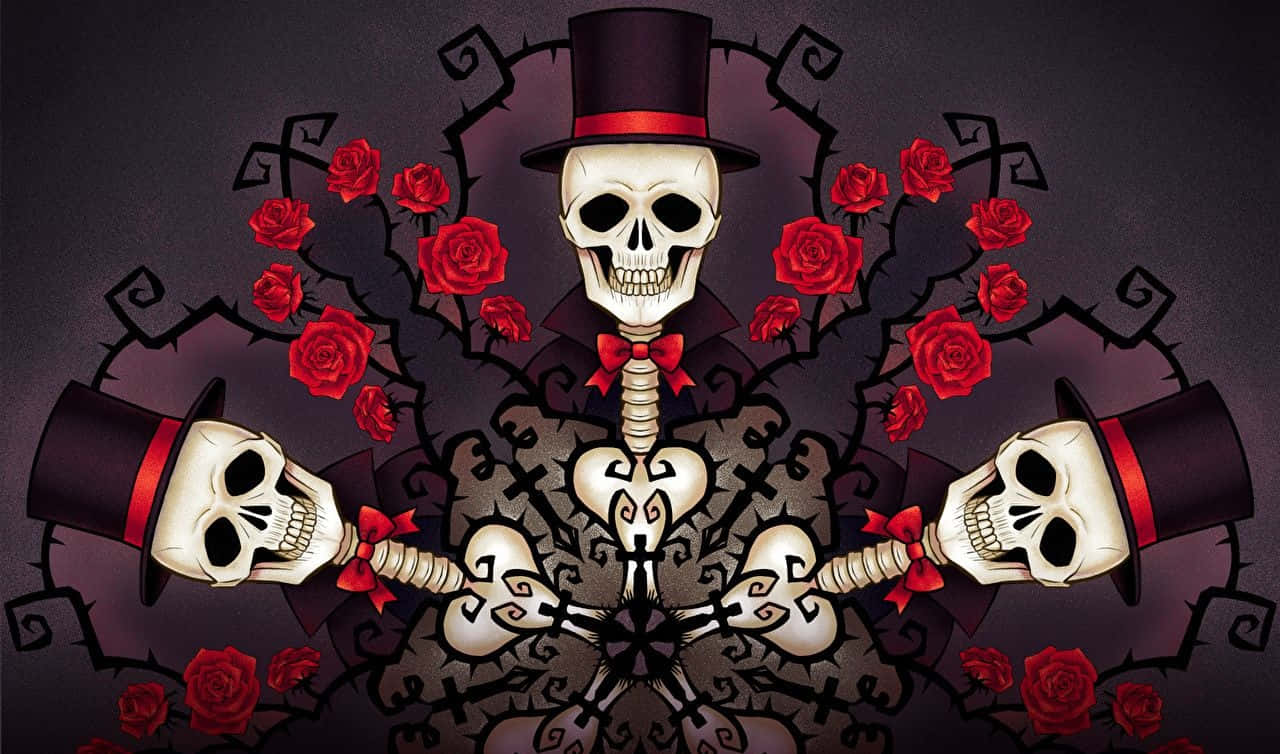 Skulls And Roses Hat Fantasy Wallpaper