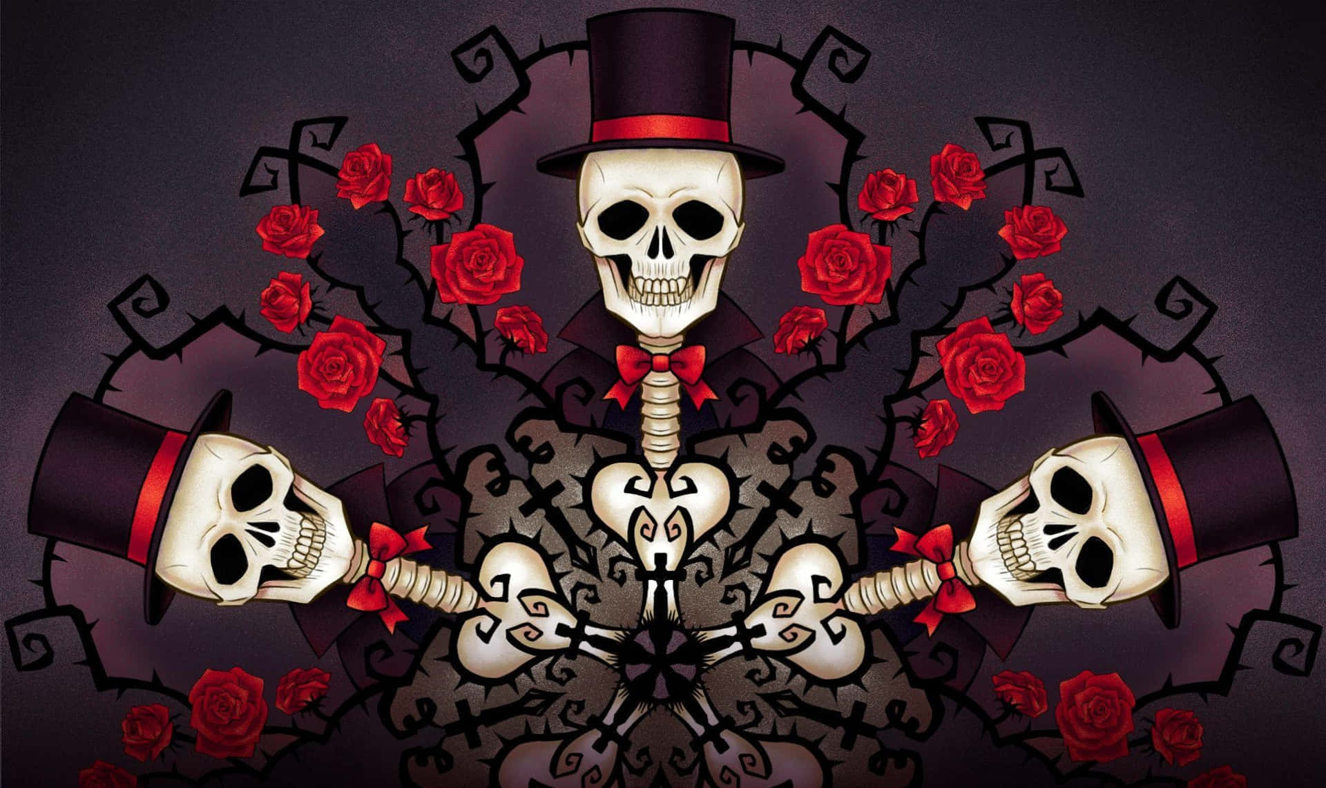 Skulls In Top Hats And Roses Wallpaper