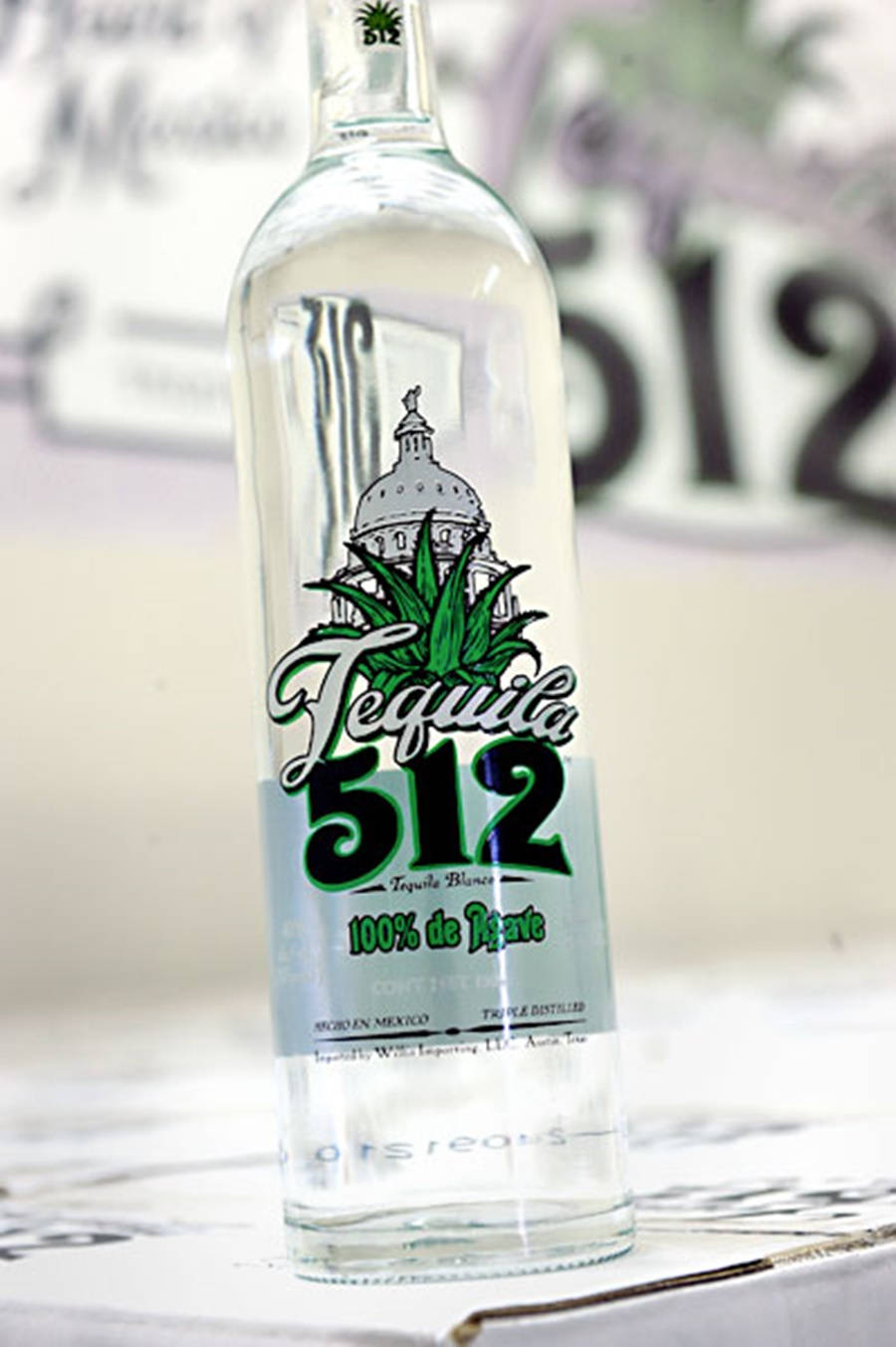 Sleek Bottle Of Tequila 512 On A Rustic Background. Wallpaper