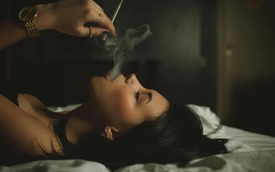 Smoking Woman Cleavage Wallpaper