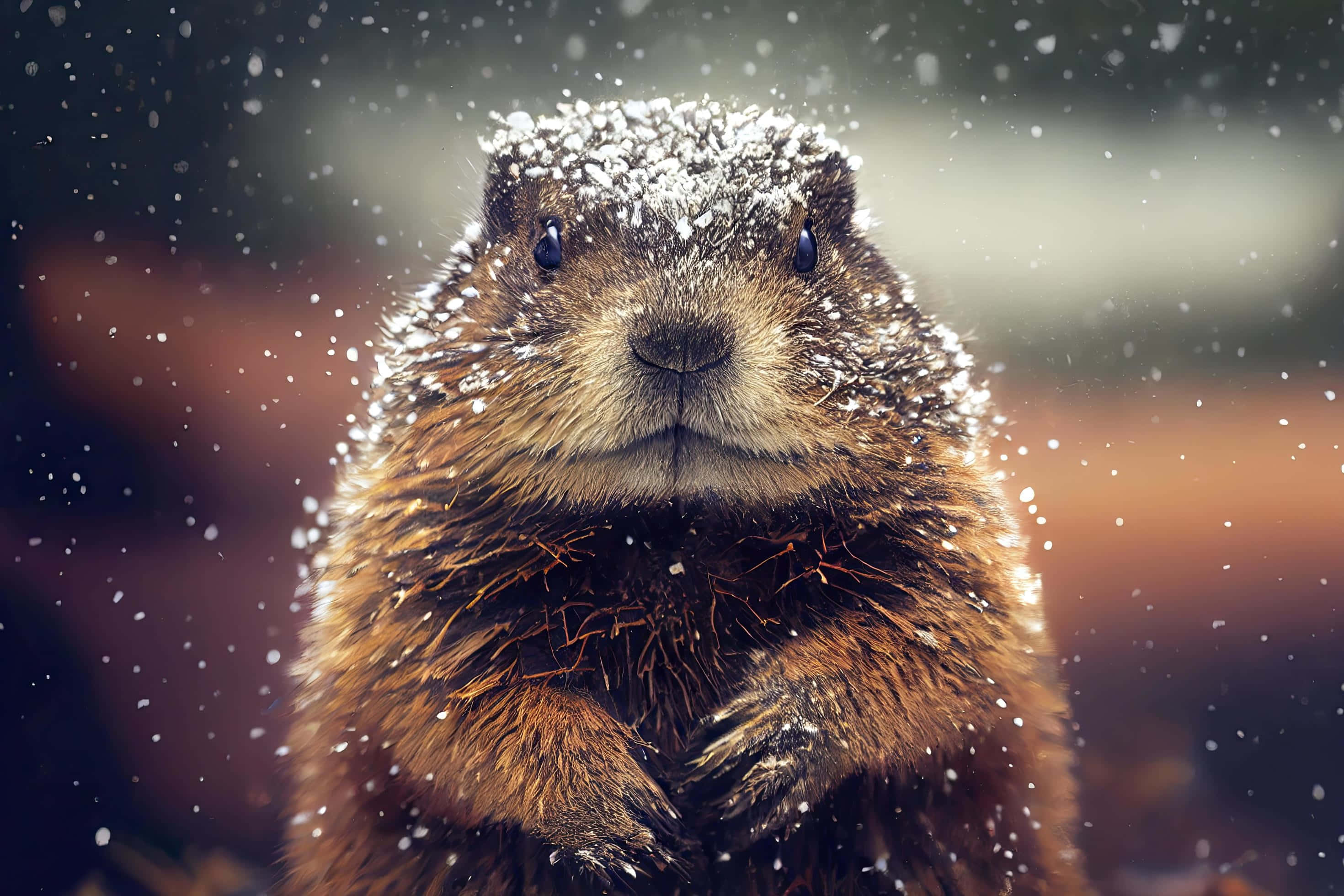 Snowy Groundhog Portrait Wallpaper