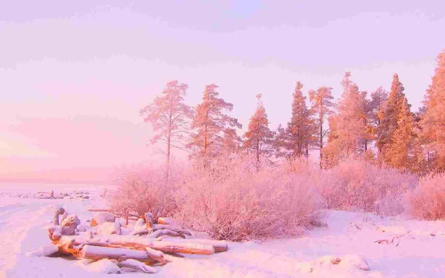 Snowy Landscape Pastel Pink Aesthetic Computer Wallpaper