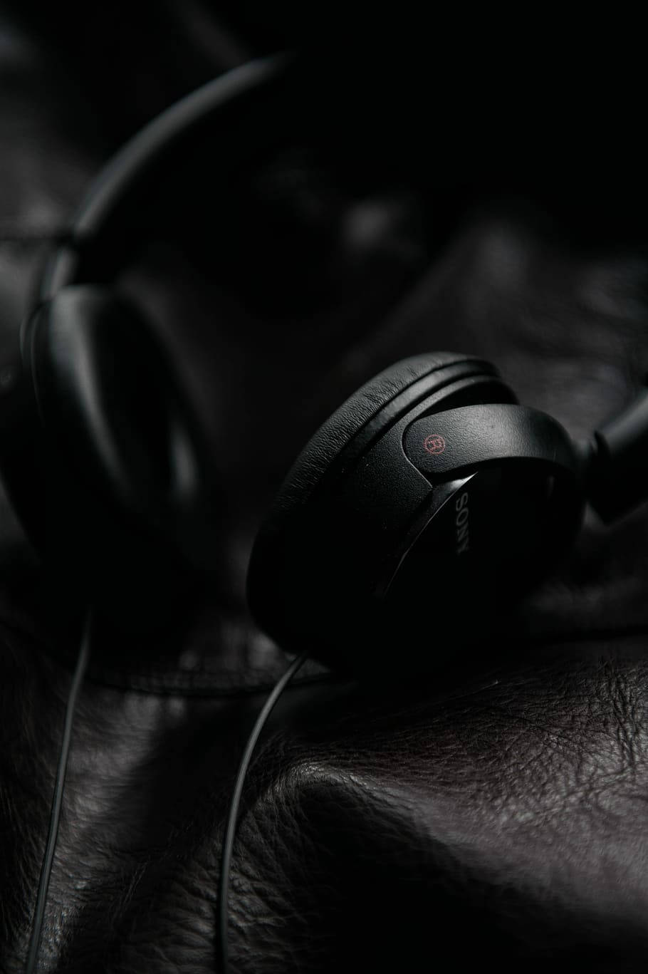 Sony Headphones On Black Leather Iphone Wallpaper