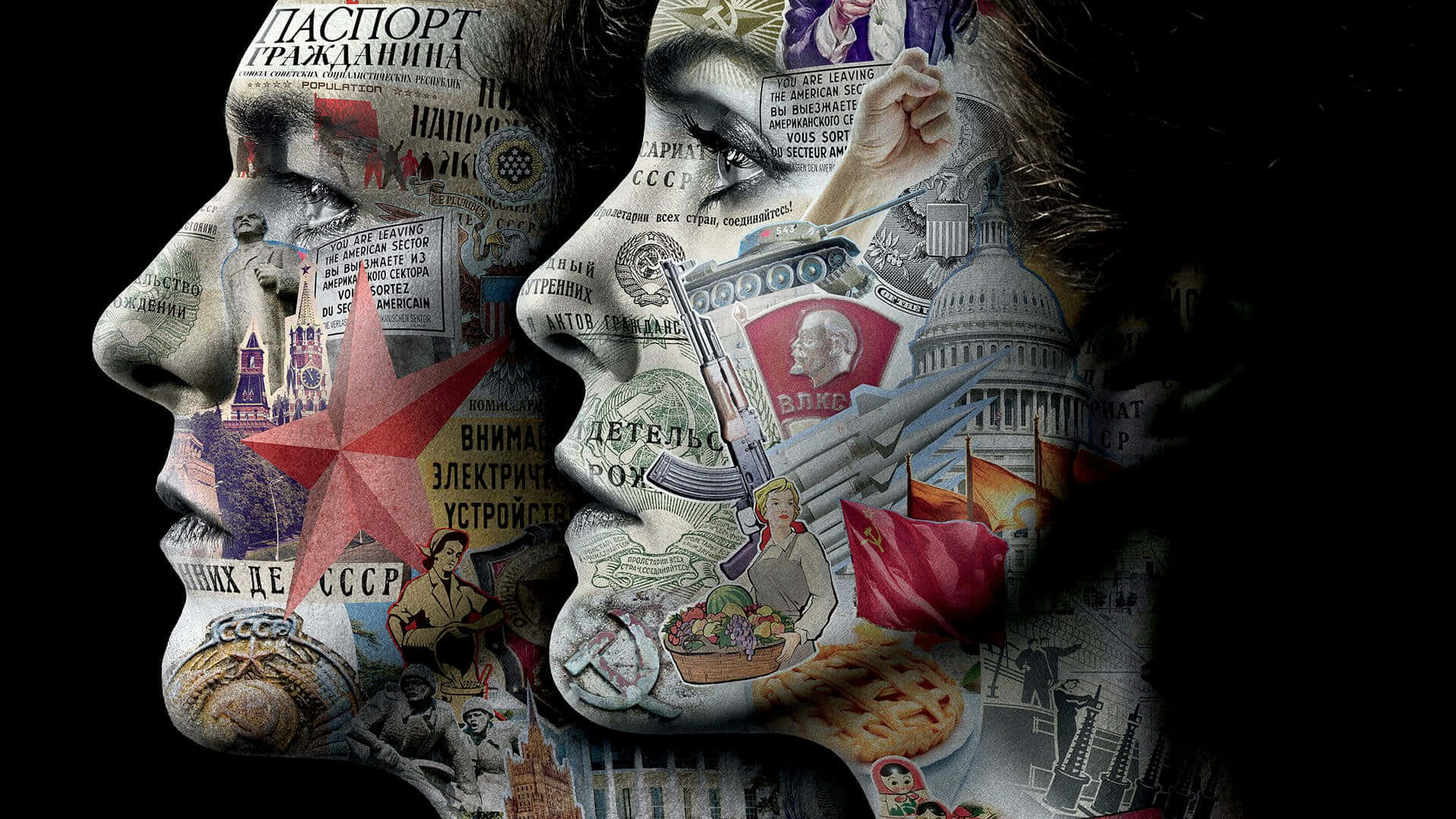 Soviet American Cultural Collage Wallpaper