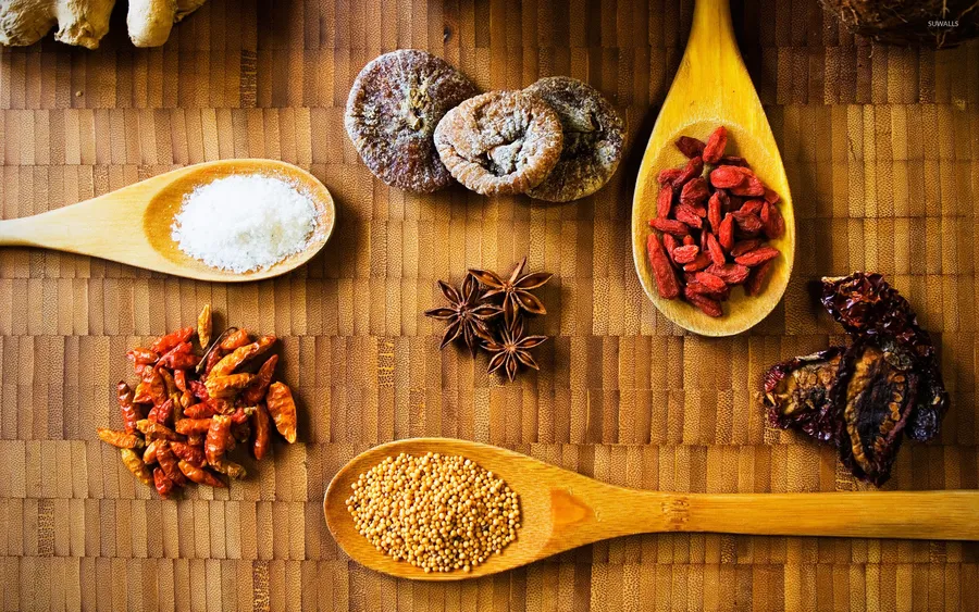 Spices On Wooden Spoons Wallpaper