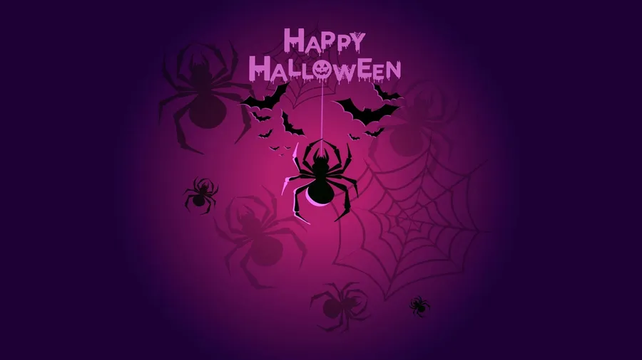 Spider On Web Purple Halloween Greeting Wallpaper