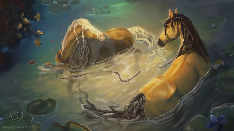 Spirit Stallion Of The Cimarron Horses In Water Wallpaper