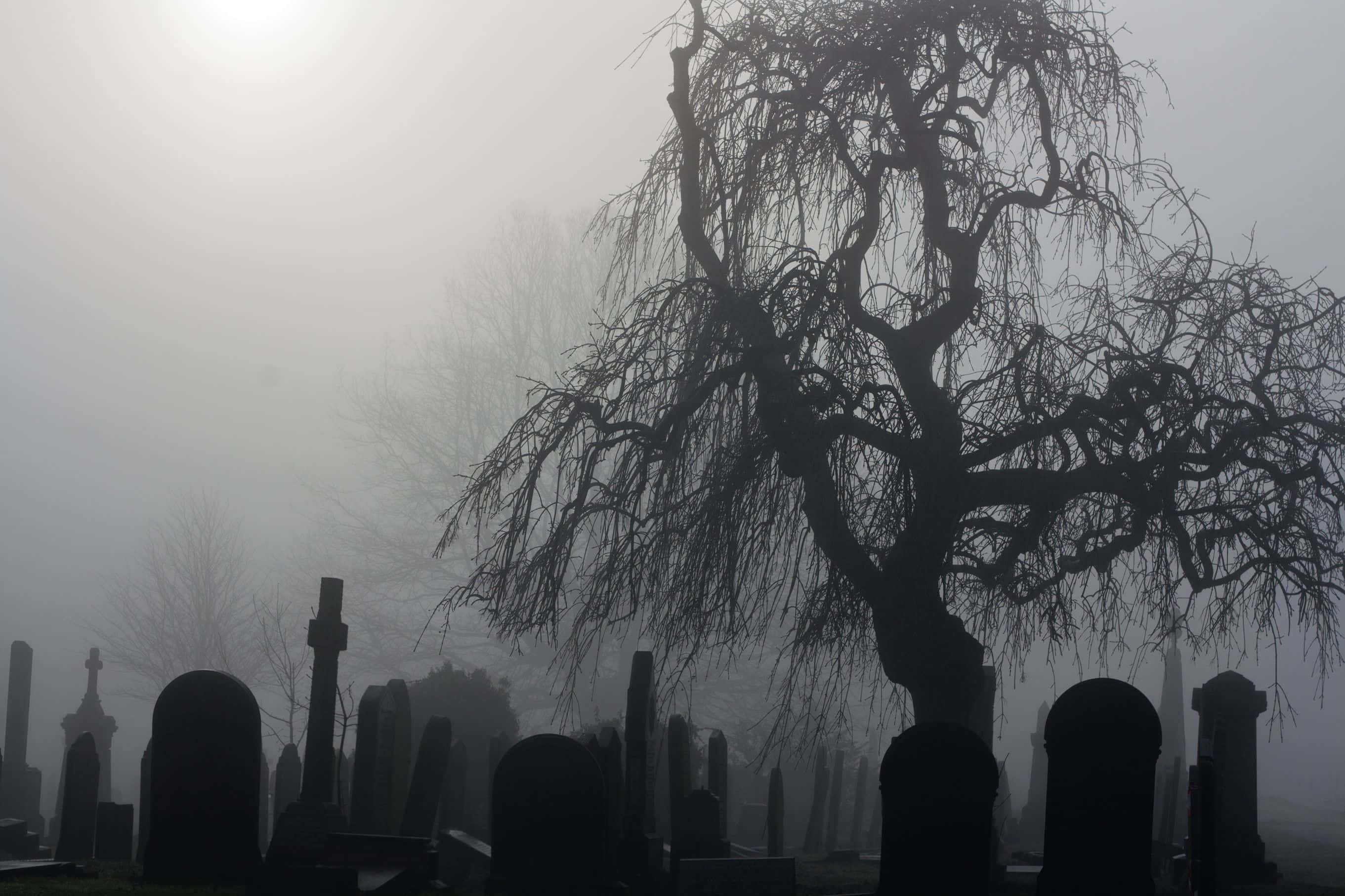 Spooky Halloween Night In A Haunted Graveyard Wallpaper