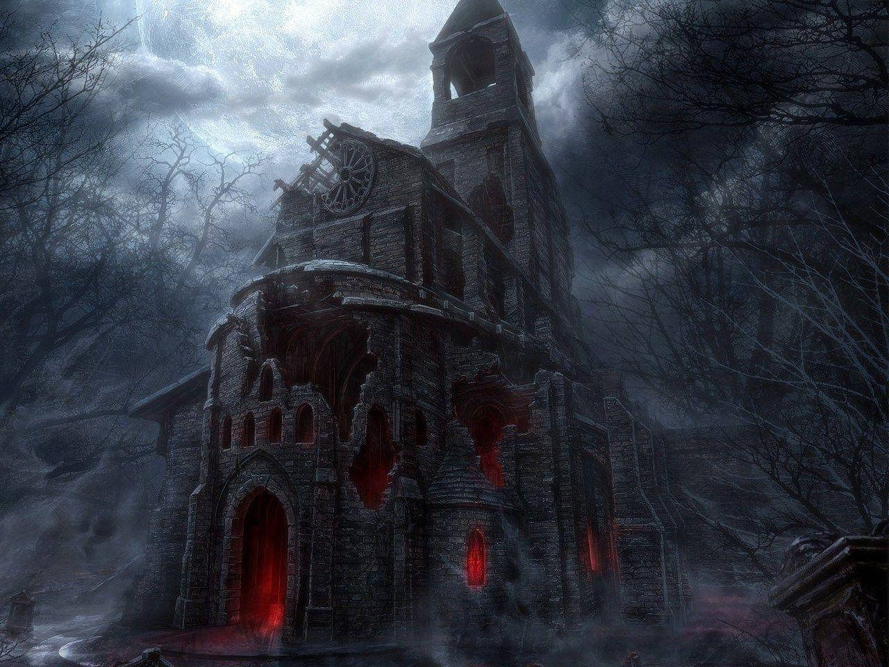 “spooky Shadows Lurk Around This Haunted House On Halloween Night” Wallpaper