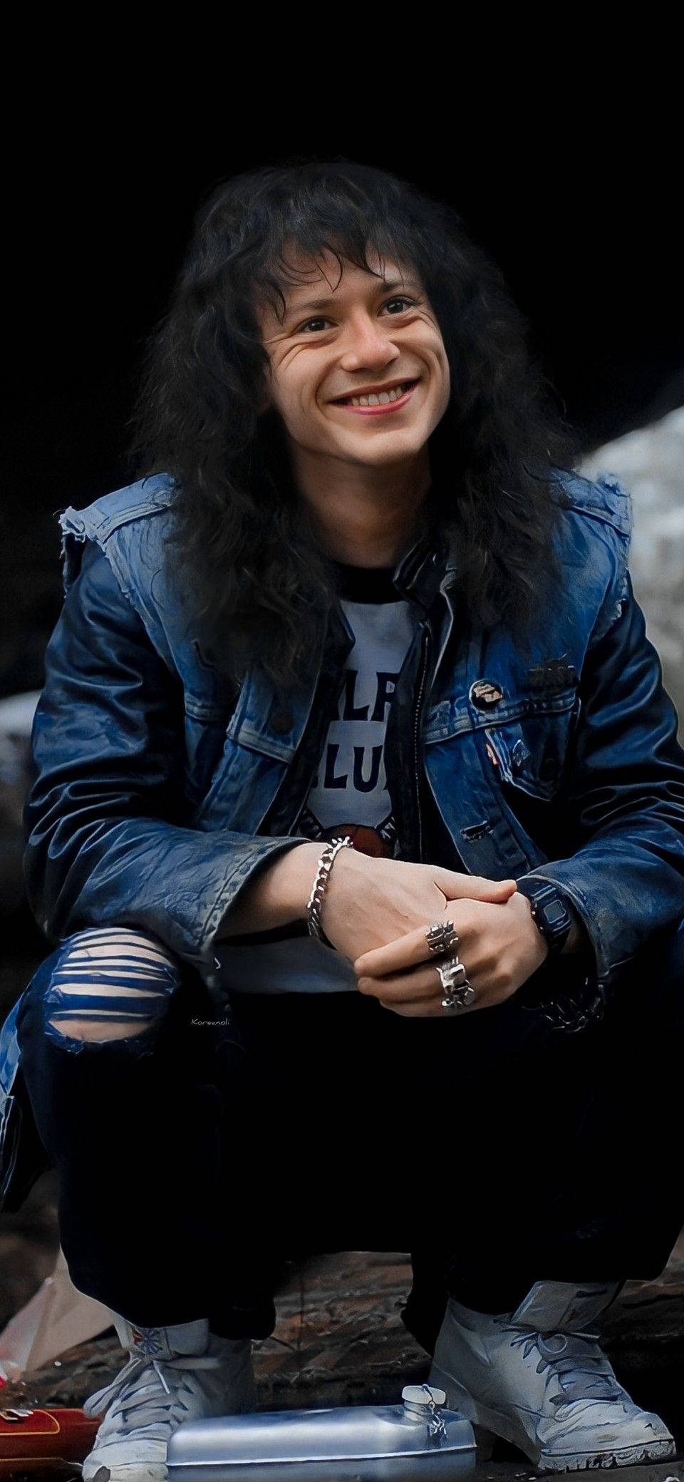Squatting Eddie Munson Phone Wallpaper
