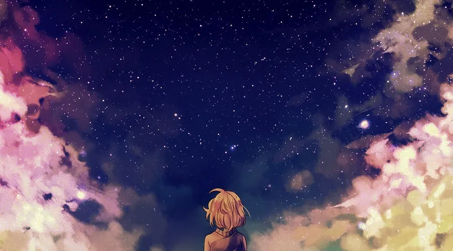 Stargazing Anime Character Nebula Backdrop Wallpaper