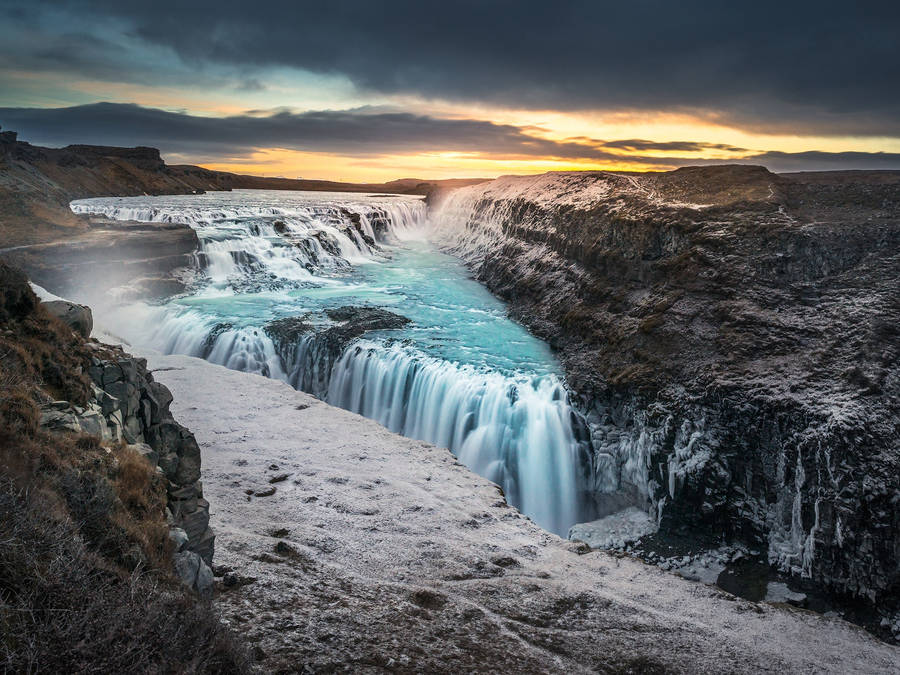“stunning Azure Waterfall Gushing Through The Rock Formations” Wallpaper
