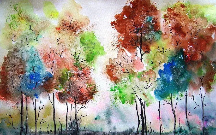 Stunning Colorful Trees Painting Desktop Wallpaper