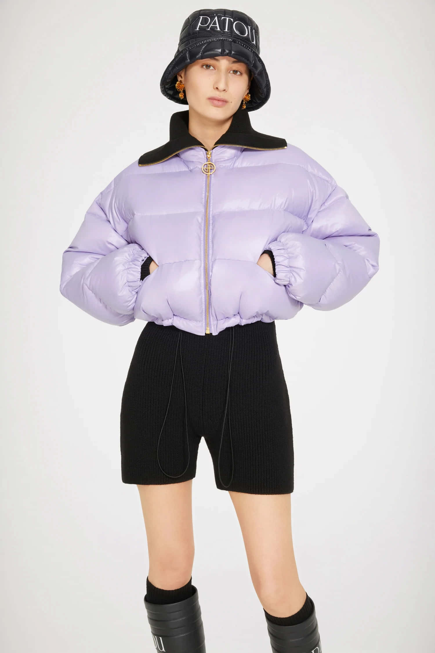 Stylish Woman In A Patou Purple Puffer Jacket Wallpaper