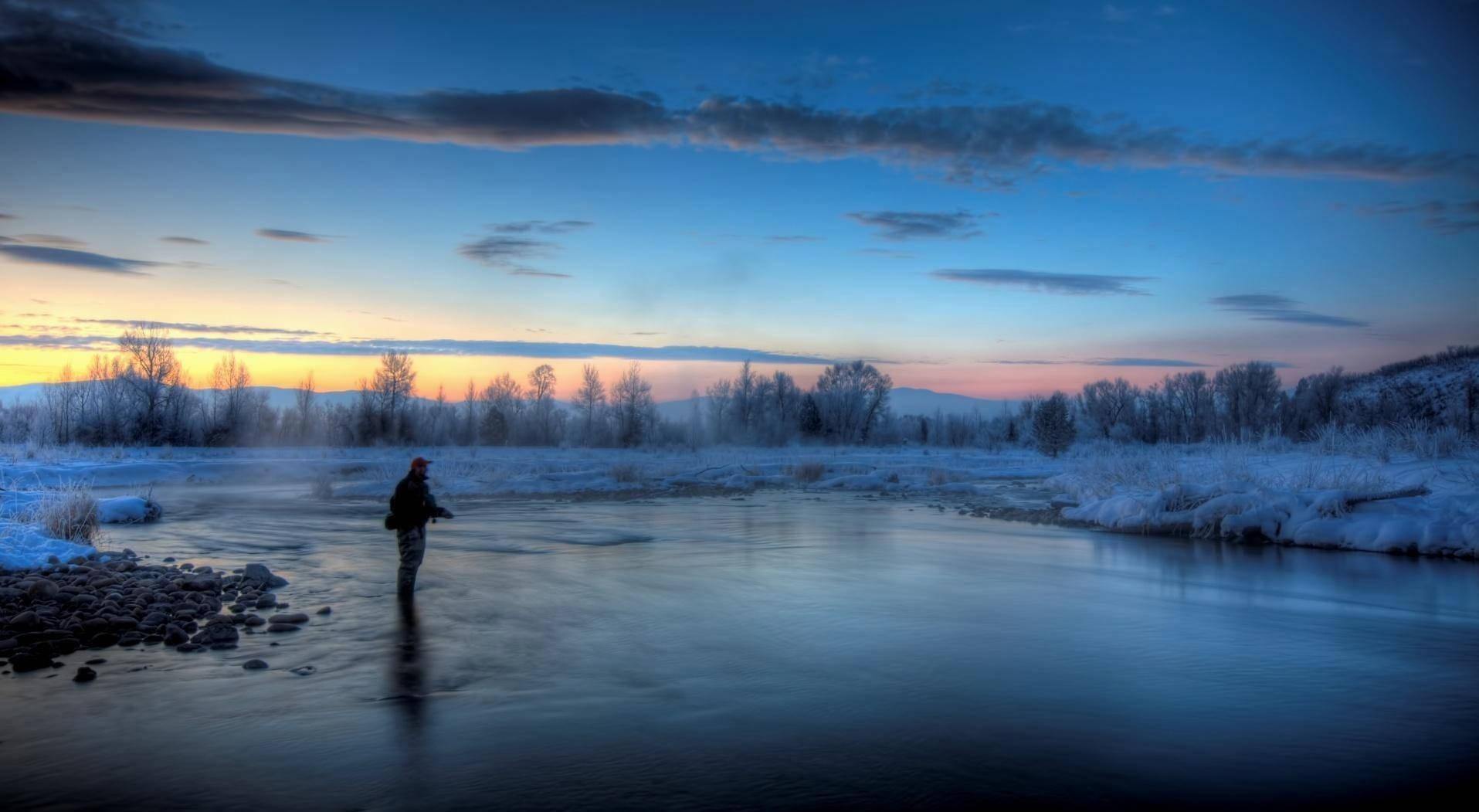 Summer Sets In As A Bass Fishing Enthusiast Enjoys The Thrill Of The Hunt Wallpaper