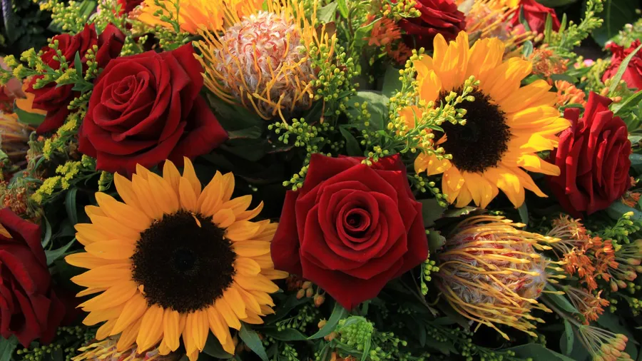 Sunflowers And Roses Lovely Buoquet Bundle Wallpaper