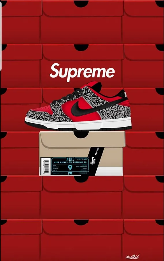 Supreme Skunk – Dunk – Red – Black – White – Black Wallpaper