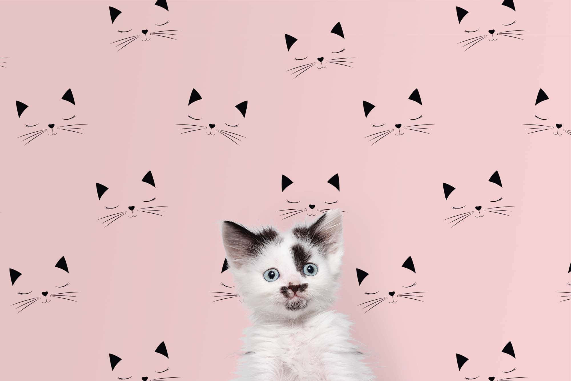 Surprised Kitten Pink Cat Pattern.jpg Wallpaper