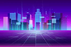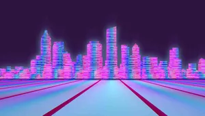 Synthwave City With Purple Sky Wallpaper