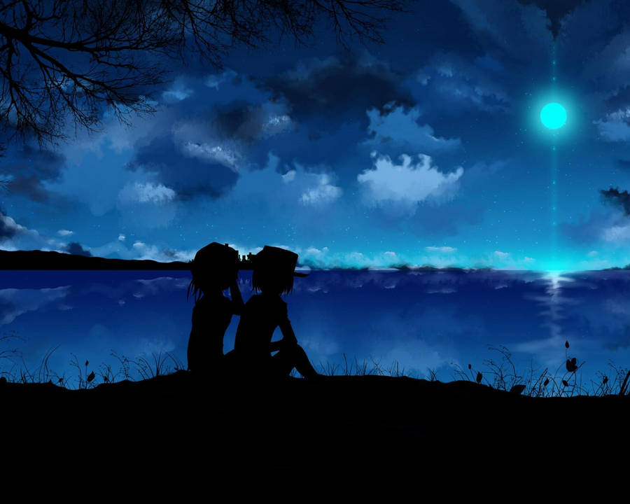 “take In The Serene Blue Anime Scenery” Wallpaper