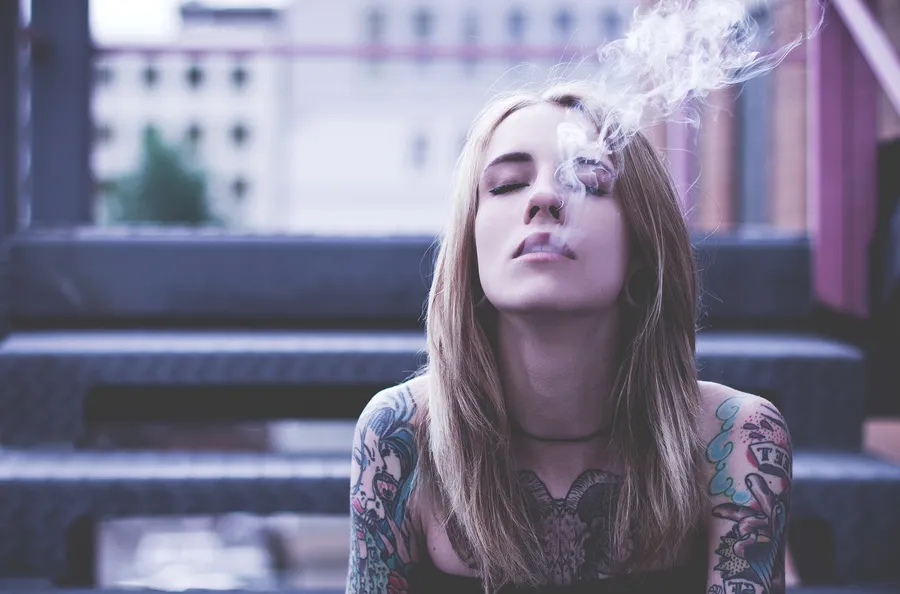 Tattooed Girl Smoking Outside Wallpaper
