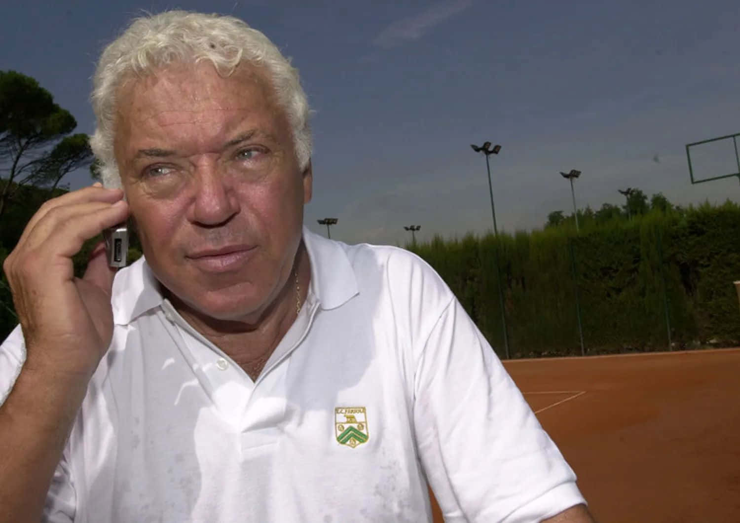 Tennis Veteran On Phone Courtside Wallpaper