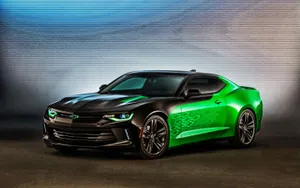 The 2013 Chevrolet Camaro Is Shown In A Dark Background Wallpaper