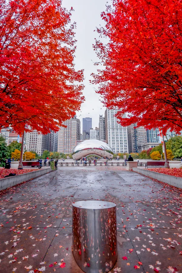 The Bean Chicago Red Leaves Wallpaper