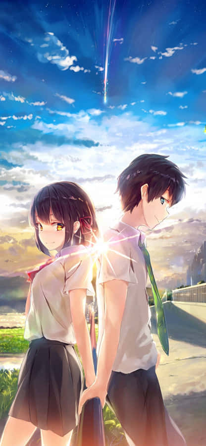 “the Beautiful And Romantic Embrace Of Young Lovers In The World Of Anime”. Wallpaper