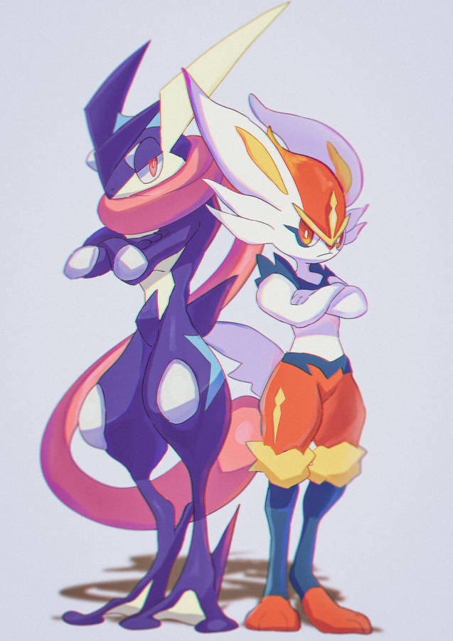 “the Energetic Team Of Greninja And Cinderace” Wallpaper